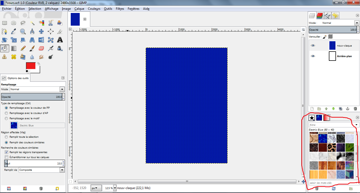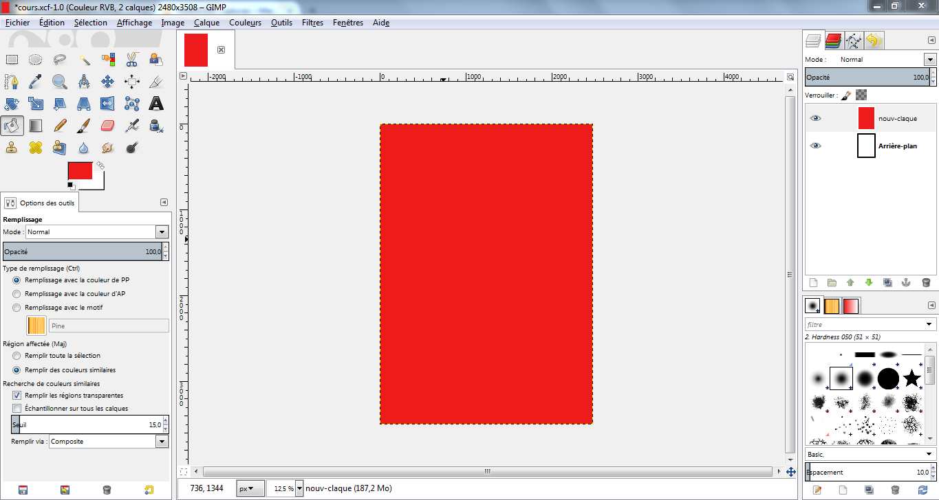 On voit que dans la fenêtre des calques, le nouveau s'est mit en rouge.
